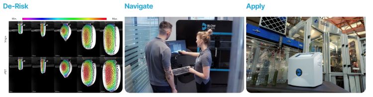 Production trials are often constrained by time, material availability and operational priorities, particularly when working with new materials or rPET. With machines running at more than 20,000 bottles per hour, learning through trial and error on the line is costly and sometimes inconclusive.
