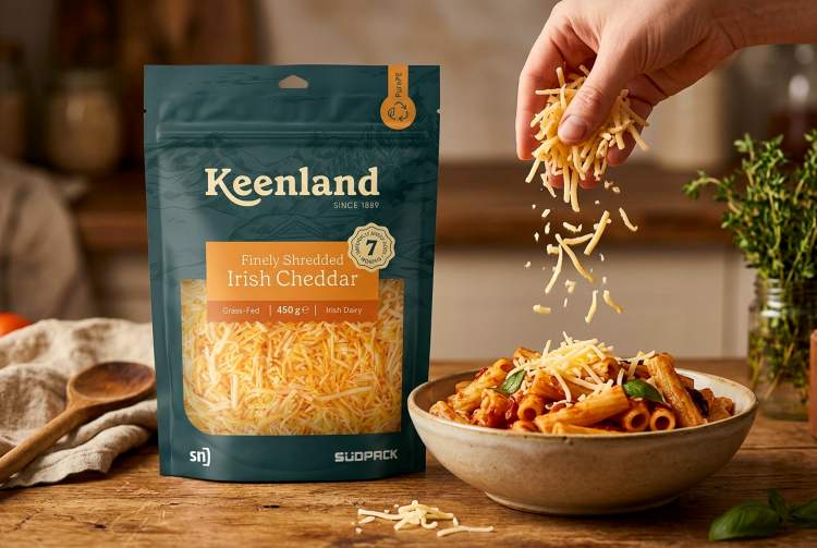 CarbonLite® Doypack PurePE for grated cheese – running on the SN FLH 300 packaging machine